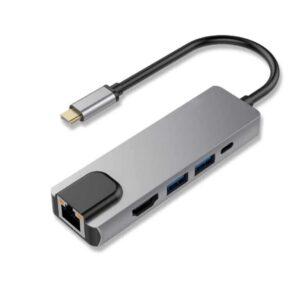 Adaptador Tipo C a HDMI 4K USB 3.0 LAN 5 en 1 Multiport